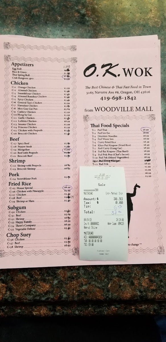 Whether you’re joining for a quick bite or a casual meal, the menu at O.K. WOK offers a reliable, unpretentious experience centered on straightforward, enjoyable Chinese cuisine.
